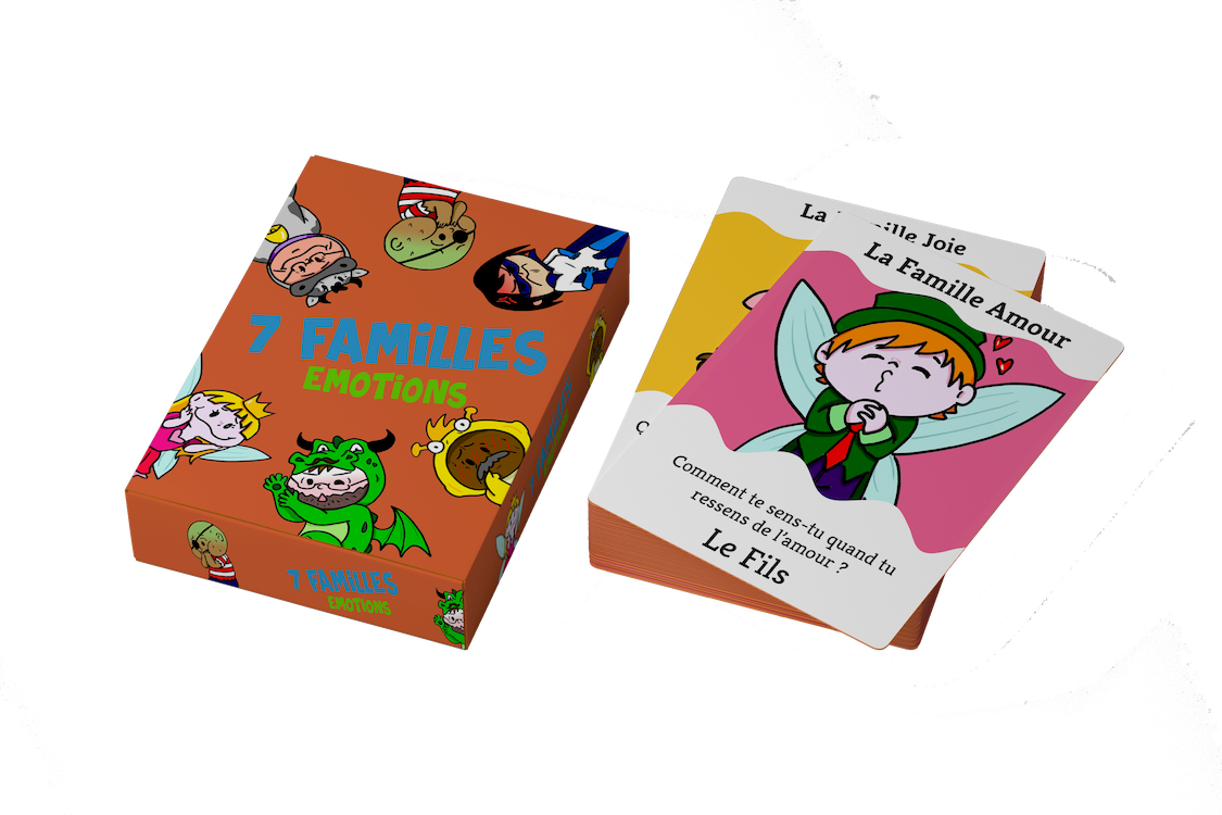 Un jeu des 7 familles avec, sur chaque carte, des actions pour aider les enfants à mieux identifier et gérer leurs émotions. Chaque jeu est accompagné d’un kit de 60 pages de jeux et exercices ainsi qu’un cahier d’accompagnement pour les parents.